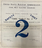 Coal Belt Electric Railway Timetable - August 3, 1919